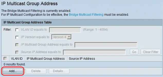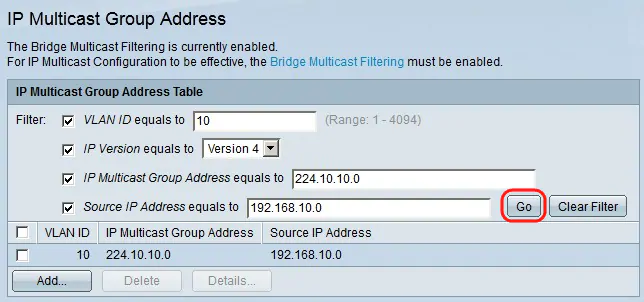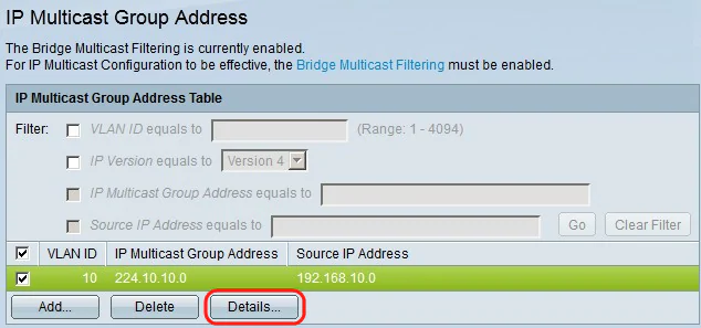 Step 1. To find a specific multicast group, you can use filters. Check the appropriate check boxes: