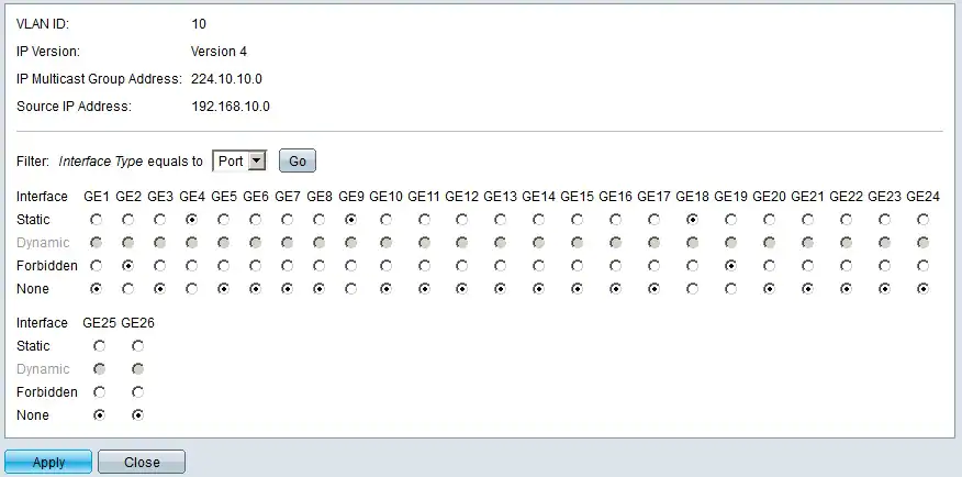 For each interface, choose how the interface is associated with the IP multicast group. For each interface, click one of the following: