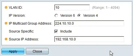 Step 2. In the VLAN ID field, enter the VLAN ID number of the VLAN of the IP multicast group.