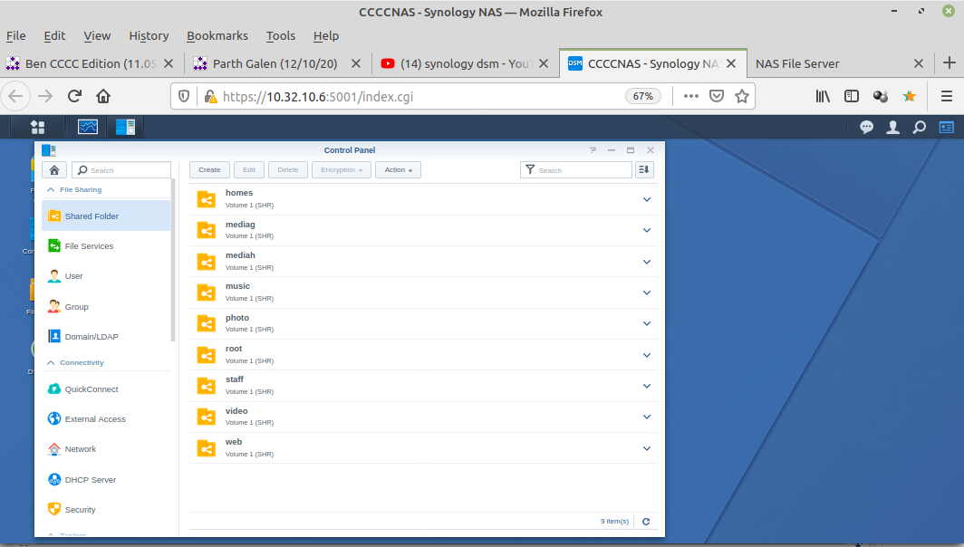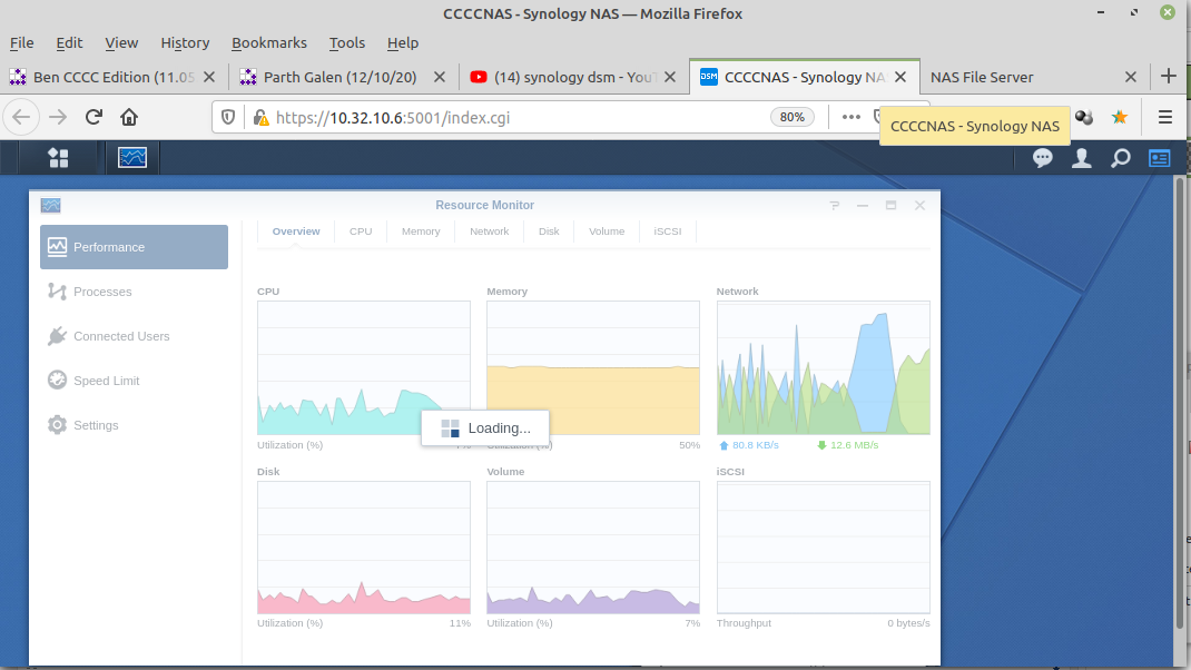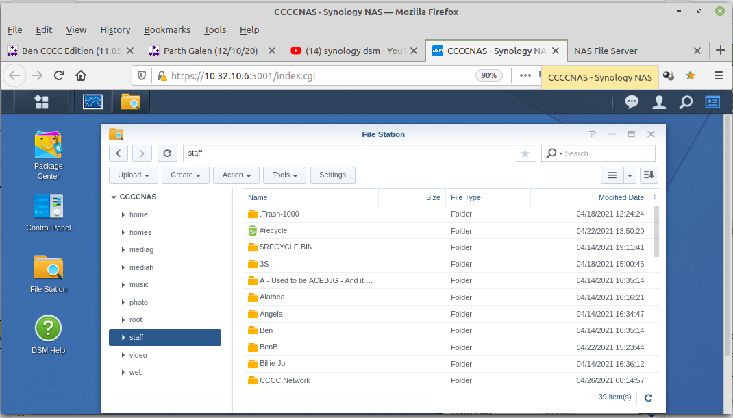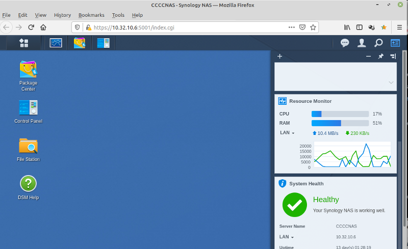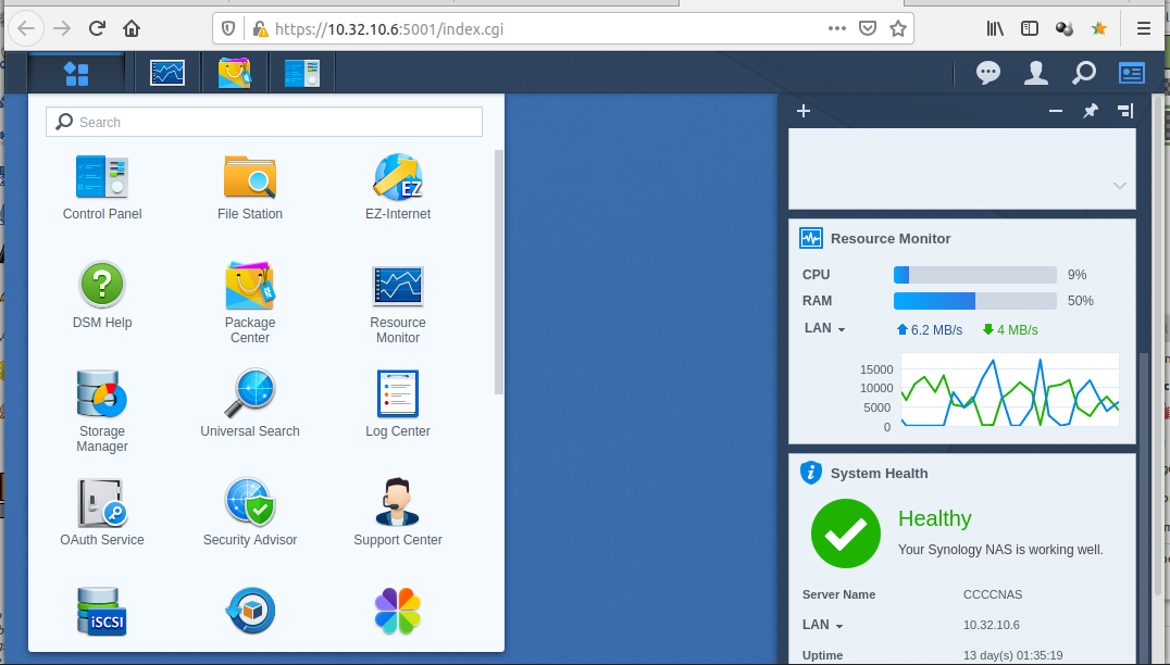 Open the DSM (DiskStation Manager) dashboard for the Synology NAS named CCCCNAS.